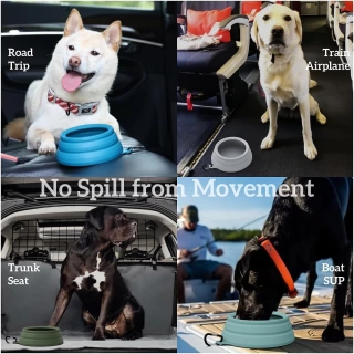 Spill Proof Collapsible Travel Water Bowl for Dogs & Cats